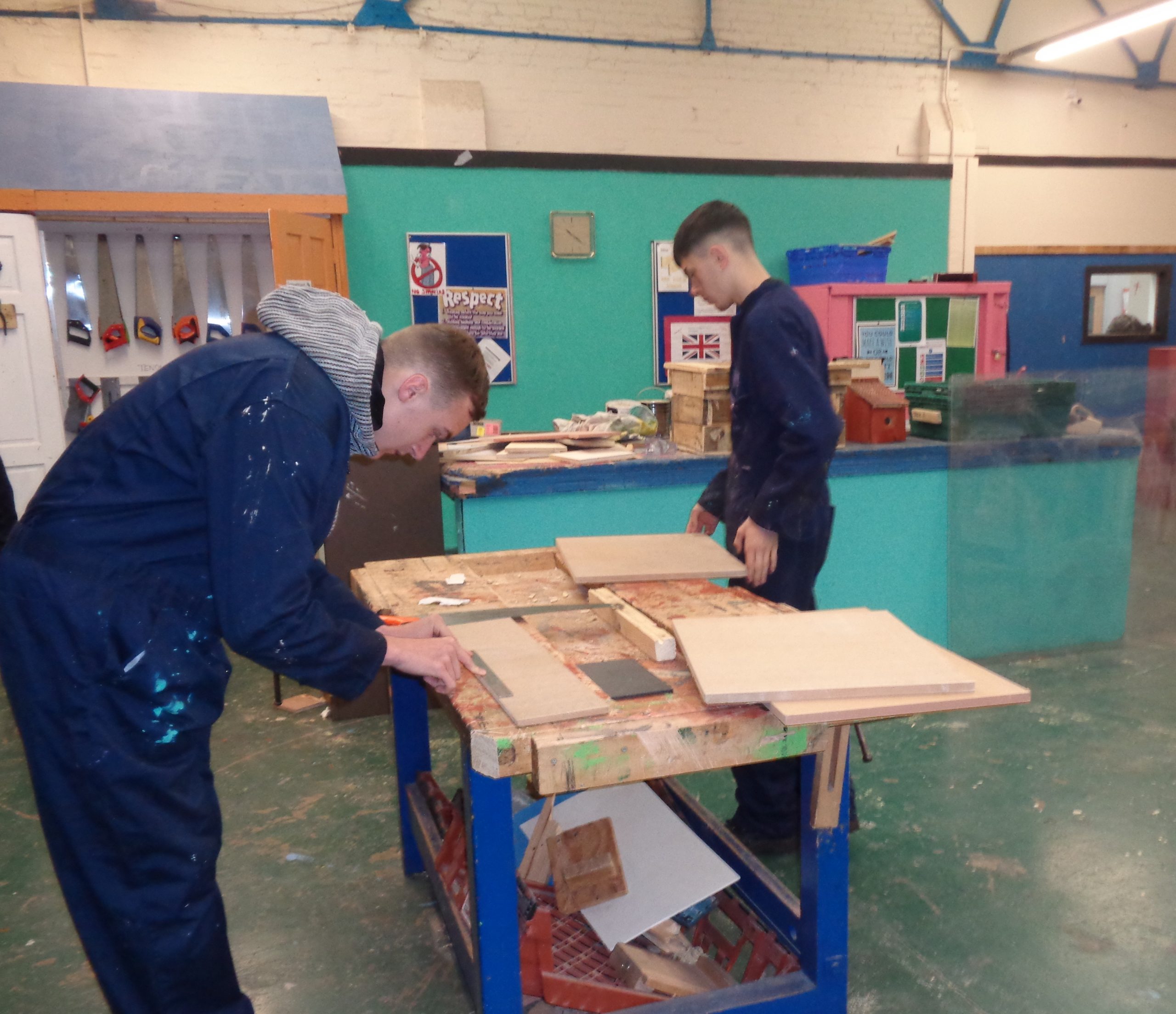 DSC00145 12/04/2019 Clare Dulson Previous Next Students demonstrating their measuring and cutting skills in Construction