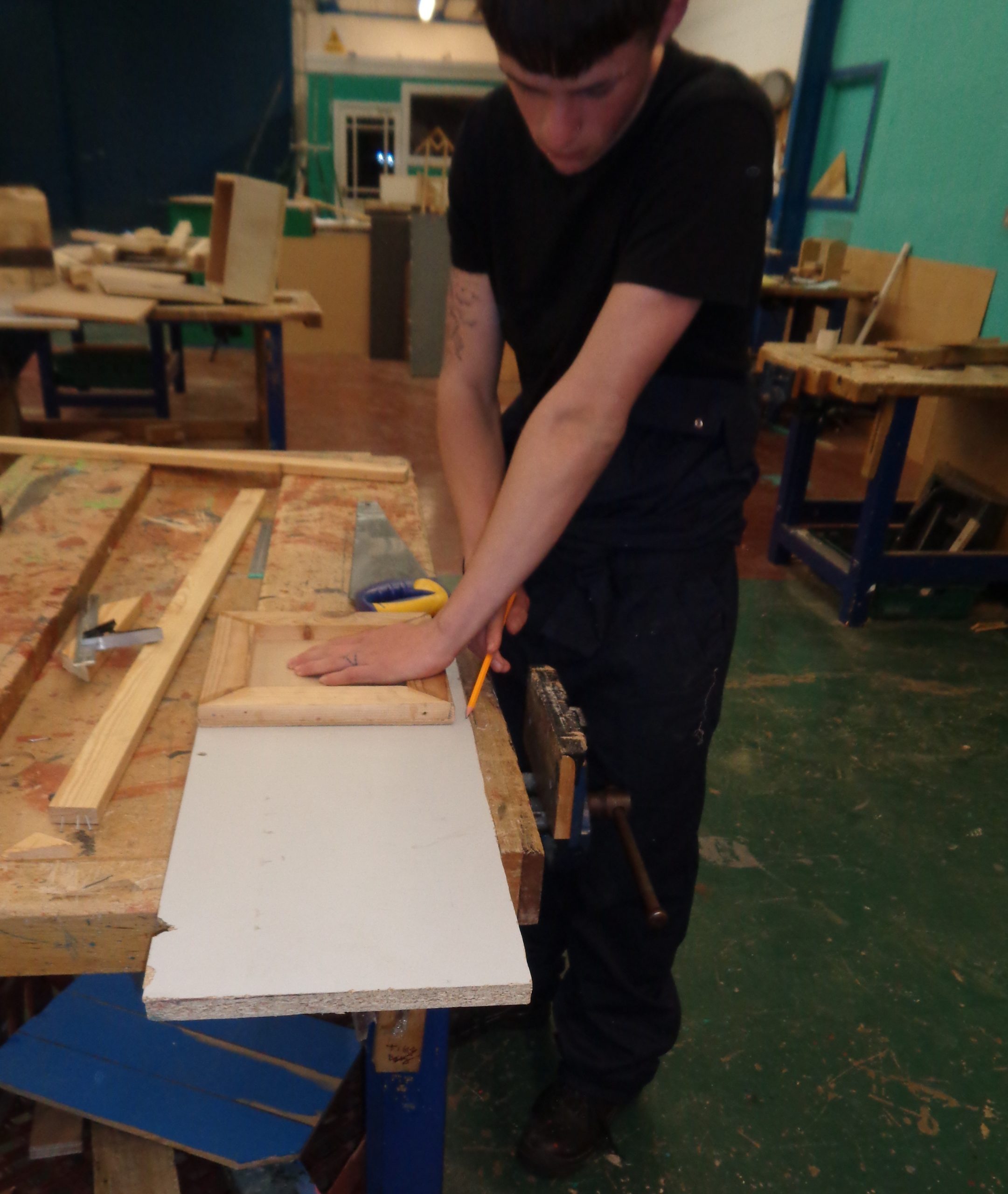 DSC00203 12/04/2019 Clare Dulson Previous Next Students demonstrating their measuring and cutting skills in Construction